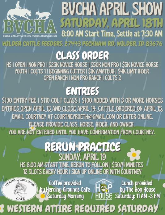 Online Entries - please take the time to enter the proper class for you and your horse!! There will be draws/results posted in quick manner to make your experience with us at our show be the best it can be.